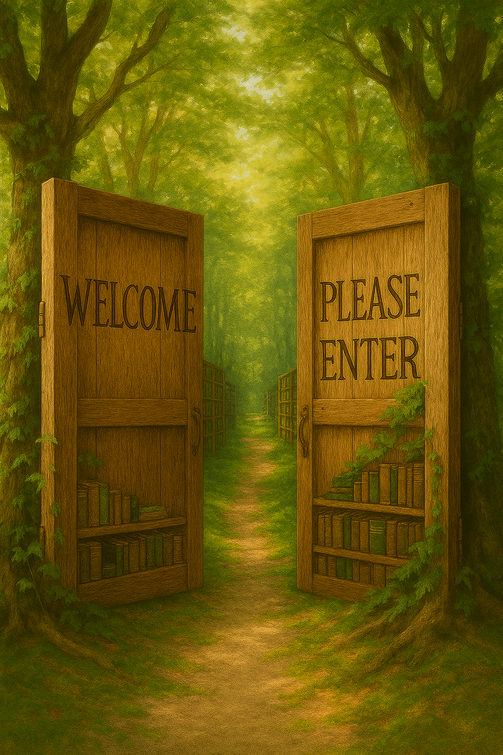 Gateway to imaginary forest library (Microsoft CoPilot AI-generated)